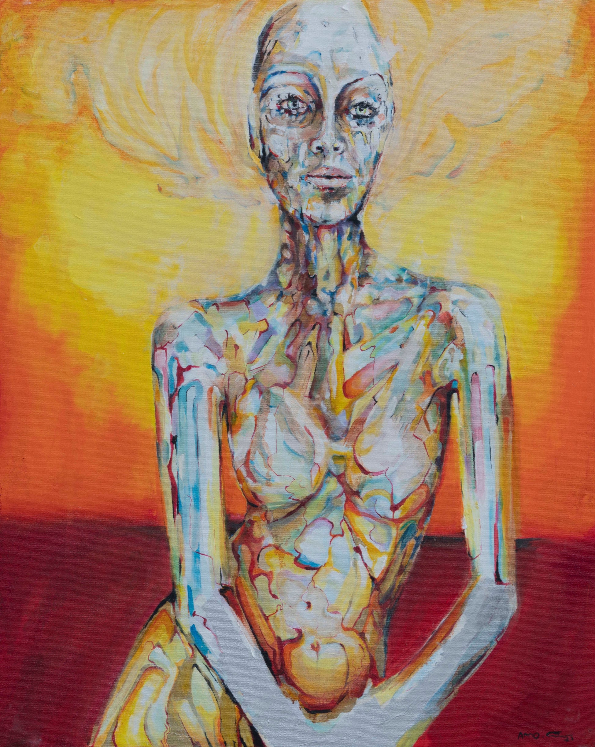 As much as I love making moody and dark paintings, I try to balance things out by going the bright way. This crystal-like figure offers the opportunity to play with all shades of light ablaze.