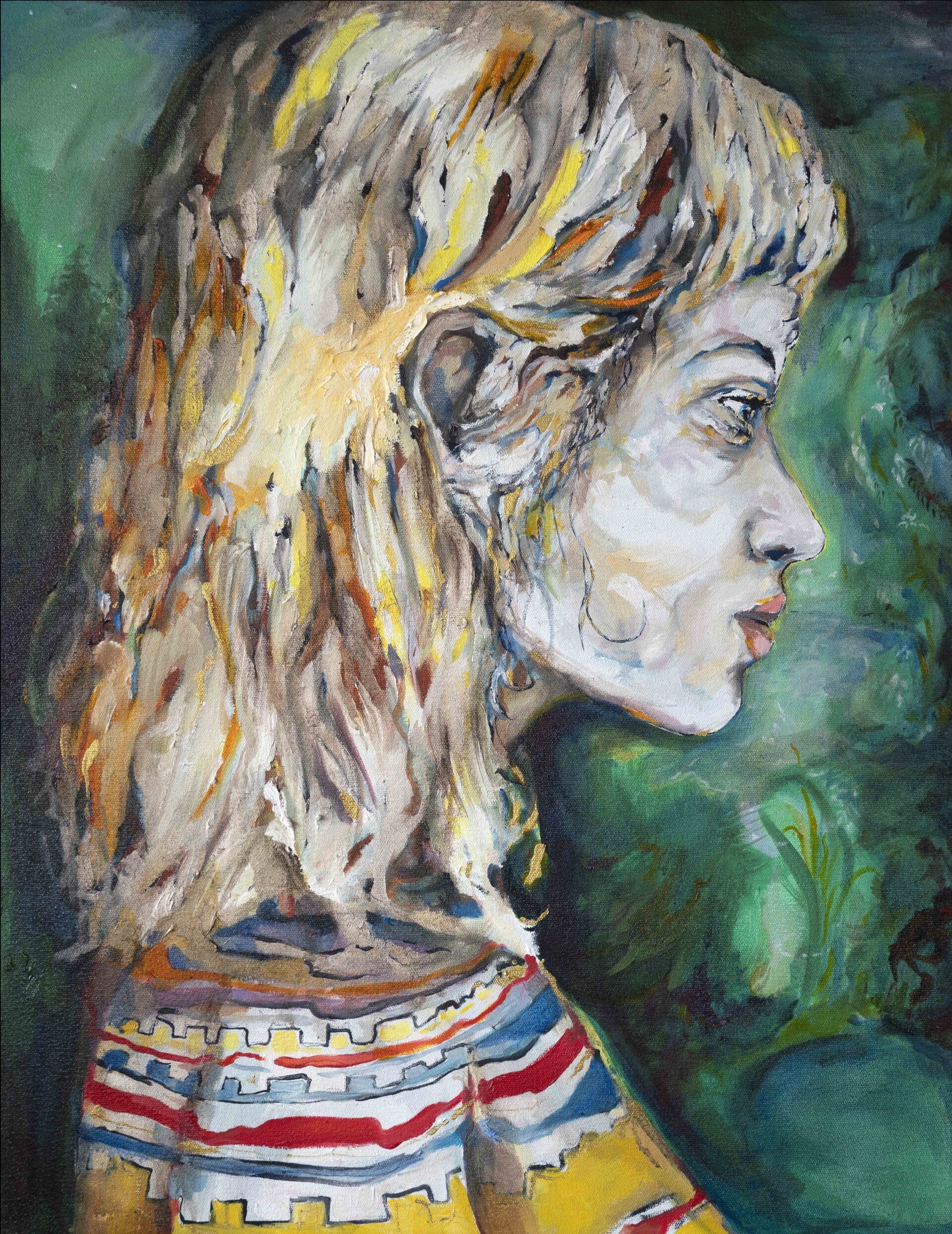 Green is part of a series of paintings from 2021 that were about exploring the format of portraits and thematic colour. Painting is a learning curve, and sometimes you create just to learn from the result.